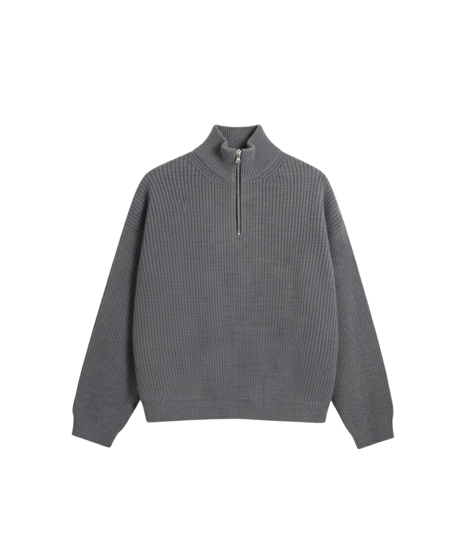 7 Gauge "Mud Gray" Q-ZIP Knit Sweater