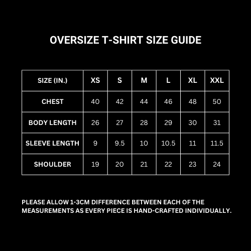 - Oversize fit. Our oversize tees are same in length to regular fit just gives a more boxy look